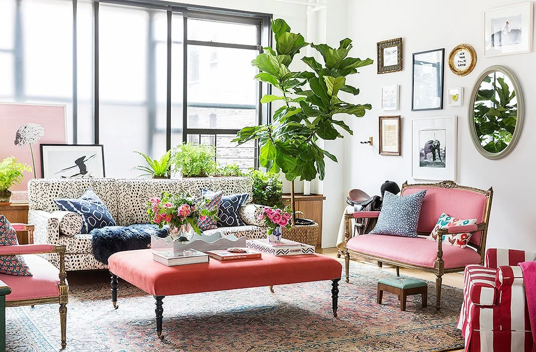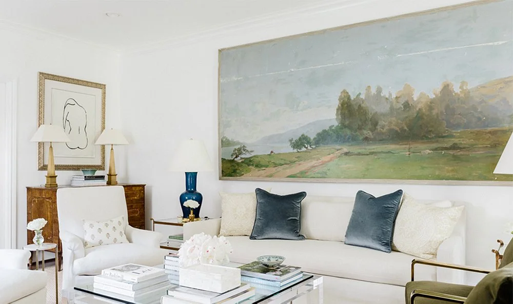 I love love the unity a large-scale piece brings to a space. It shouts confidence! In this example, it’s a double dose of confidence in that bold color choice. Violet purple is not for the faint of heart,… a favorite Crayola color once upon a time!