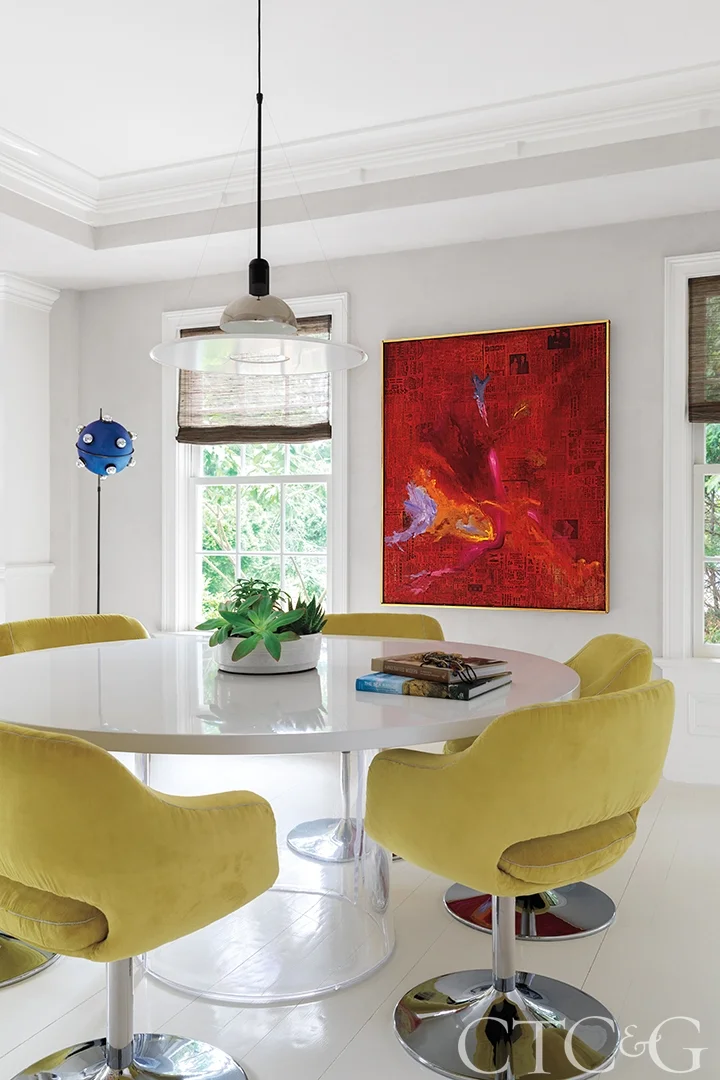 Look how this colorful, sizable (just about floor-to-ceiling) abstract piece reinforces the fun, casual vibe in this eating area.